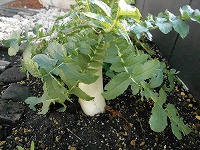 辛うじて残された露地植えダイコン2本は、寒さに耐え、少しずつ成長しているように見えます。