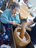 立ち上がって杵を振り上げられる人も、そうでない人も、それぞれのやり方で餅をつきました。