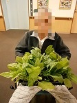 この間の野菜育成に関して、数々のアドバイスや虫取りをして下さった入居者様に件の虫食い気味野菜を抱えて頂き、記念の撮影をした後、処分させて頂きました。