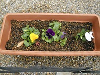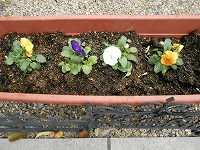 これまでホウレンソウとブロッコリーを植えていたプランターですが、現状は写真のとおり、パンジーの花が咲いています。