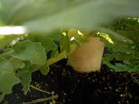 中庭に植え替えたダイコン2本、ますます太くなってきました。