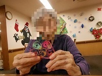 ペットボトルのキャップなどを利用して、入居者様にクリスマス飾りを作って頂きました。