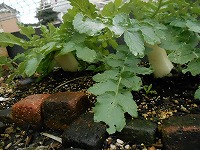 露地に植え替えたダイコンは、2本とも順調に育っています。
