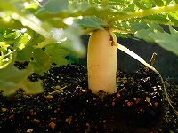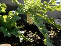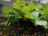 当施設中庭に露地上しているダイコン2本は、順調に大きくなっています。