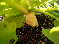 根っこの地面から覗いている部分が、葉っぱをめくらなくてもはっきりと見えるようになりました。