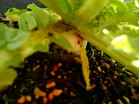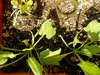芋虫に食べられてしまった秋蒔き野菜のうち、幾つかの苗からは、新芽?が生えてきているようです。