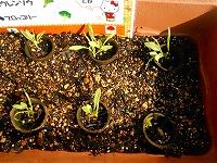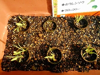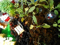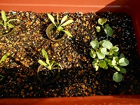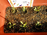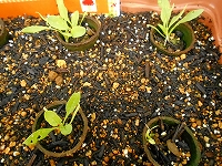 プランターに植え替えた苗のうち1つ萎れてしまったものがありましたが、新たに別の種が発芽したらしく、1本新たな葉が見えてきました。水やりを継続し、様子を確かめていこうと思います。