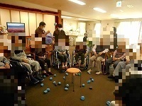 この日は入居者の皆様、2組に分かれて玉入れをしました。