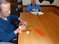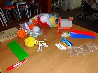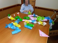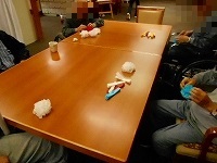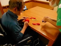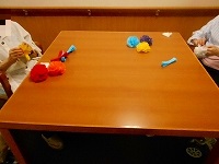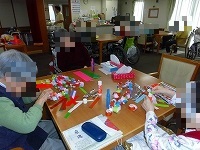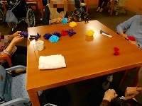 飾りつけの定番、花飾りをレクの時間に作って頂きました。