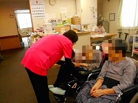 踊りの後、入居者様一人ひとりと握手して頂き、皆様喜ばれていました。