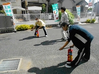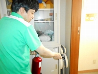 主として新人職員を対象に、消火器の使い方や通報装置の操作方法などを学びました。