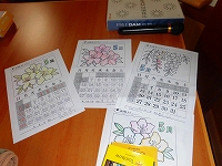 5月のカレンダーは、ふじとつづじの2種類があり、好きな方を選んで塗って頂きました。