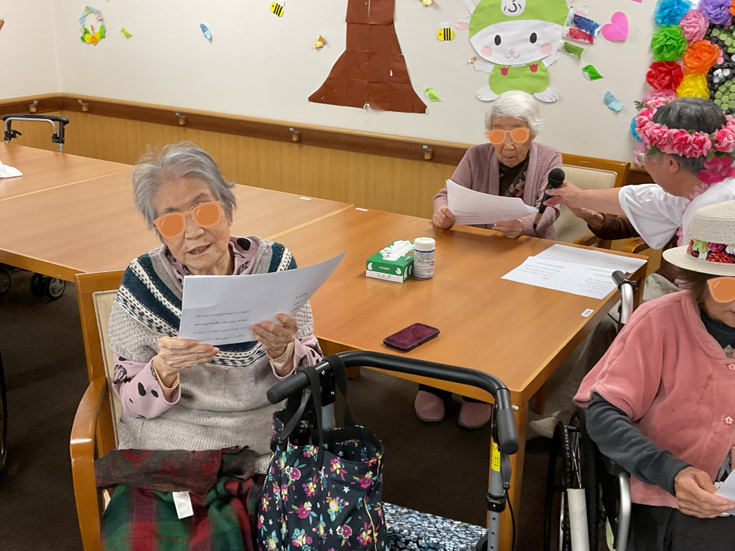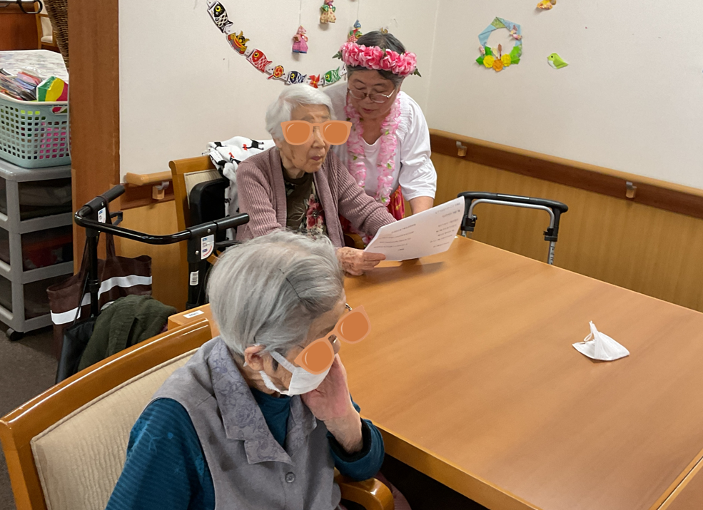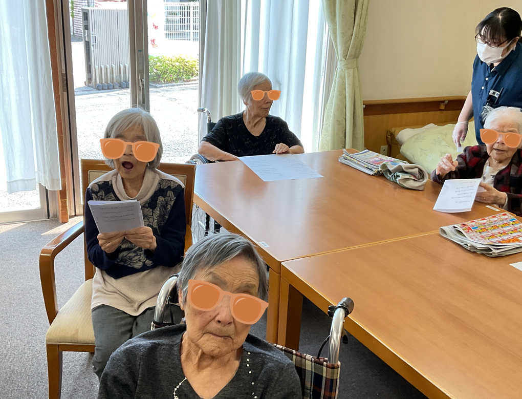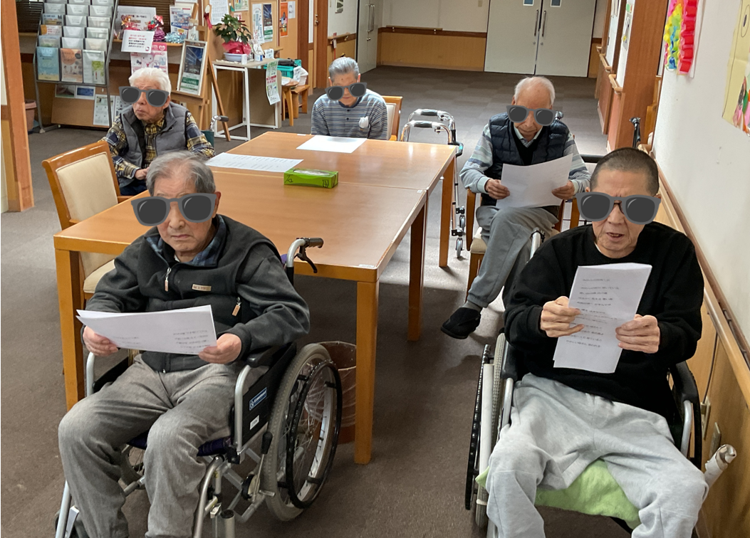 毎回、季節にあった曲を選曲して演奏してくれることもあり、今回は入居者様も耳なじみな曲だったので一緒に歌ってもらいました。