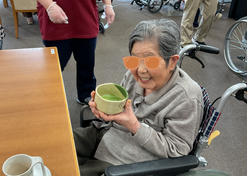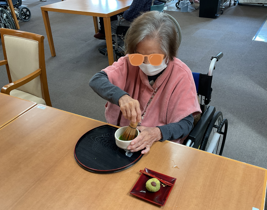 入居者様の中には、茶道経験者もいましたのでご自身で点てていただきました。