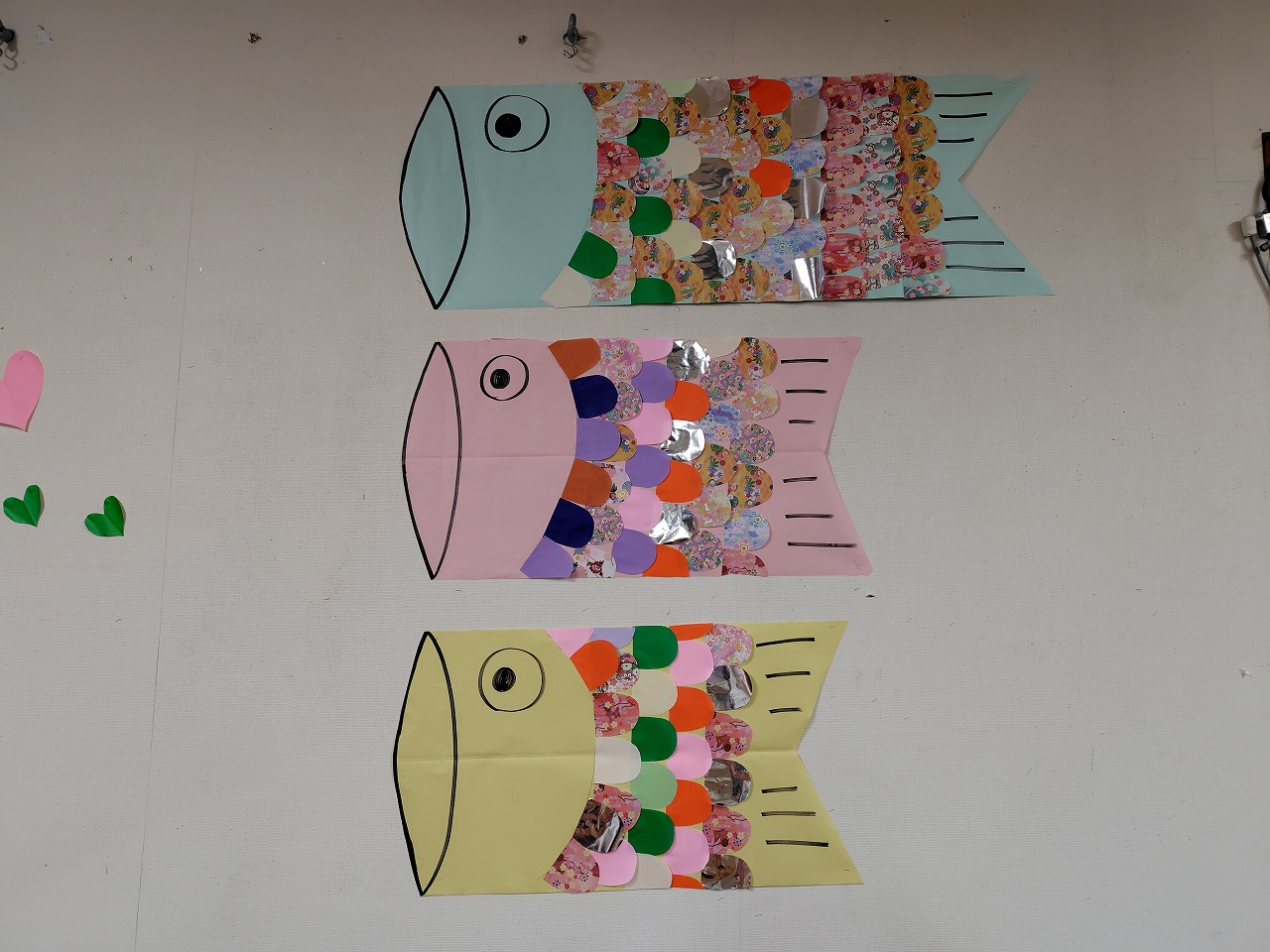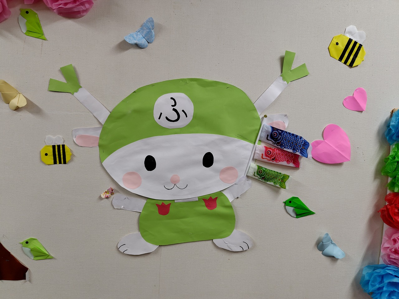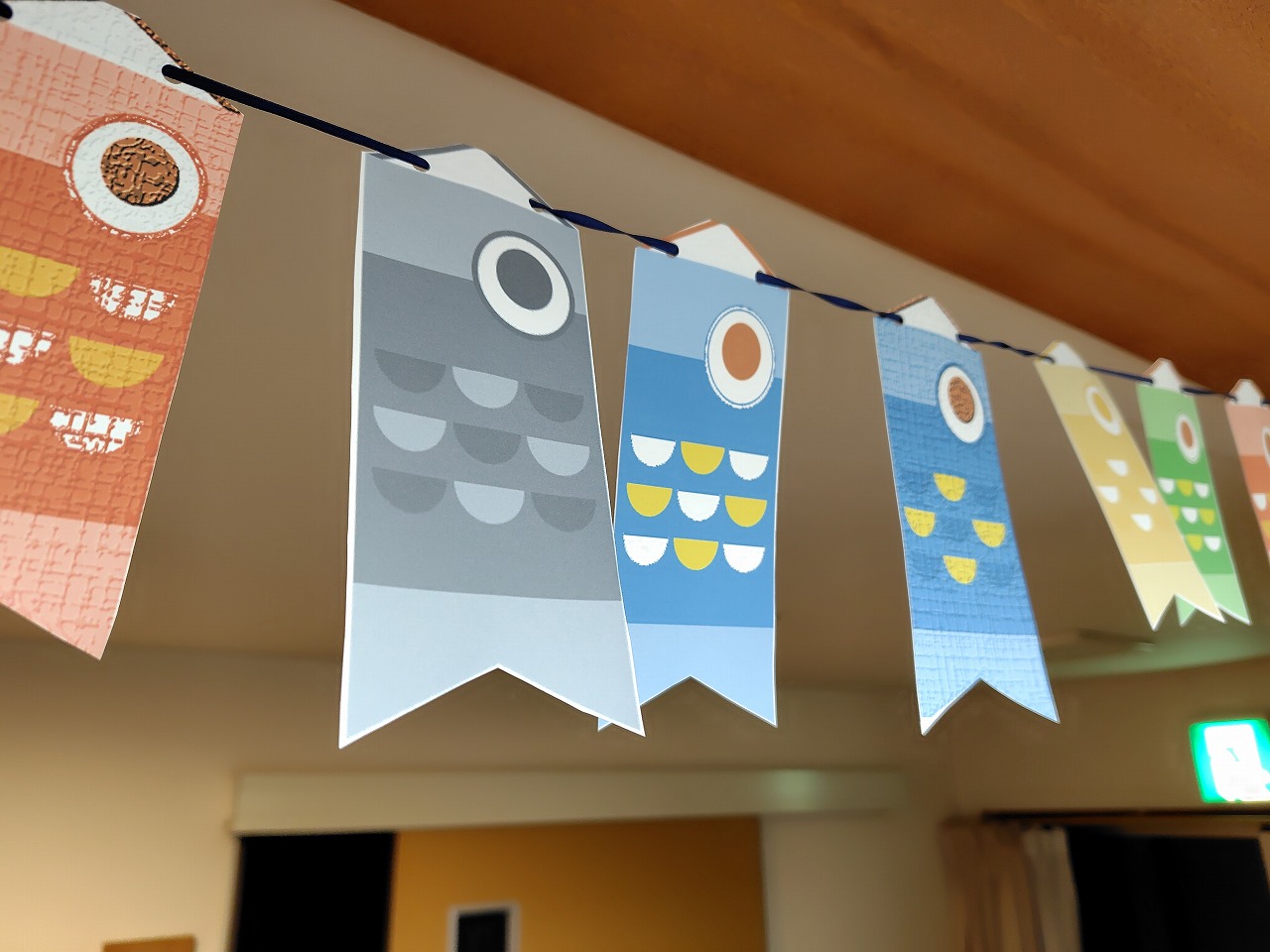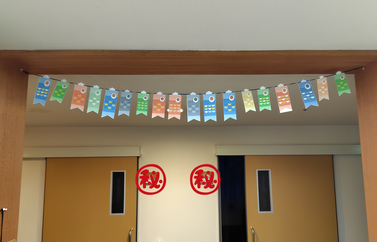 施設のガーランドを桜から鯉のぼりに変更しました。