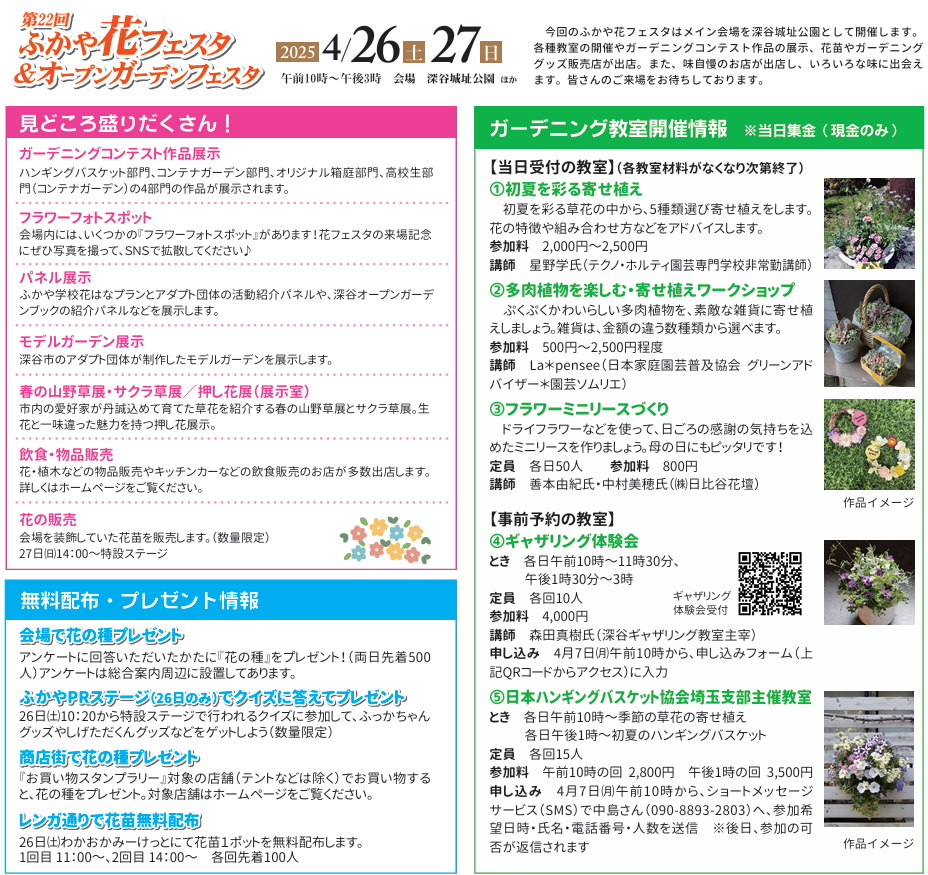主催 深谷市・深谷オープンガーデン花仲間・公益財団法人深谷市地域振興財団