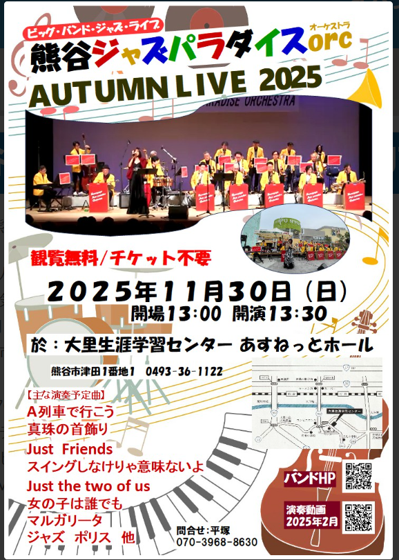深谷周辺のイベント情報を探していたところ、熊谷ですが熊谷ジャズパラダイスAUTUMN LIVEを見つけました!