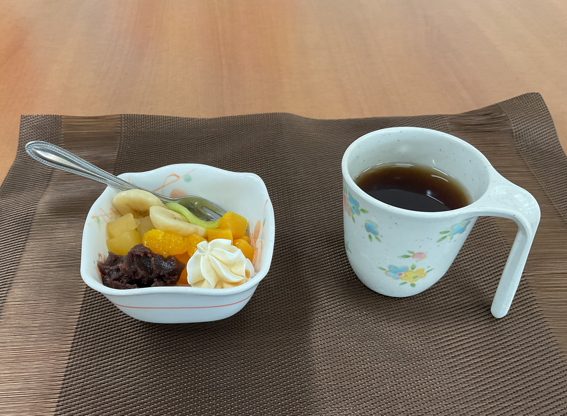 今月のスペシャルおやつは、フルーツあんみつでした!