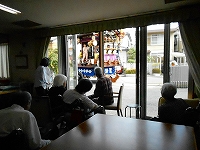 今日は夕方に山車を見に行きますが昼にも巡行時に施設に立ち寄ってくれました。