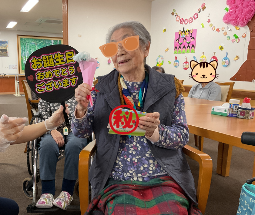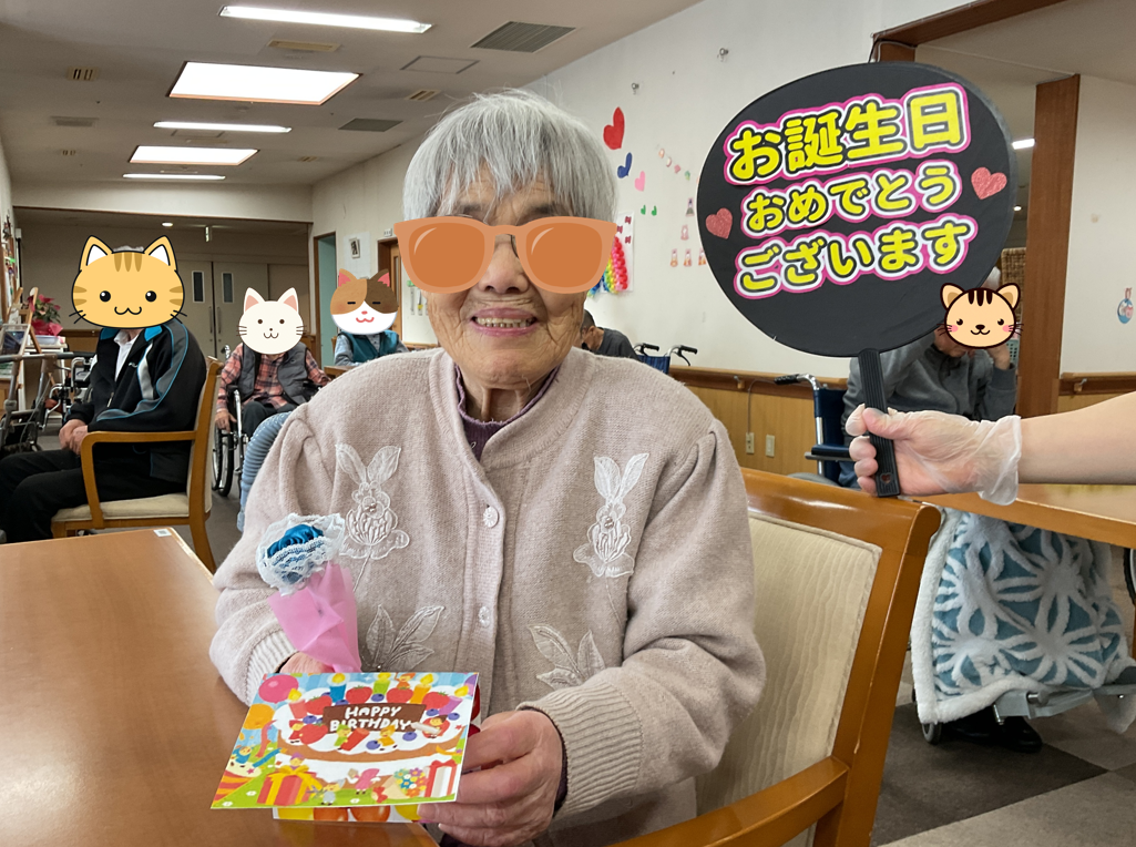 先日行われた3月生まれの入居者様をお祝いする誕生日会のようすを紹介します。