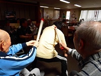 今日のレクリエーションは以前にも行った棒投げです。