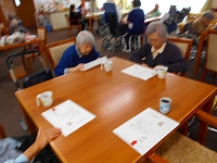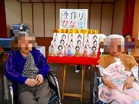 施設では、先月から塗り絵などで準備をしていた手作りひな壇が飾られています。