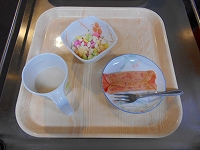 おやつは桜餅風クレープと雛あられです。