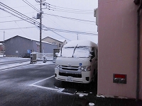 深谷でも昼ごろから降り始め、すでに中庭には雪が積もってきています。