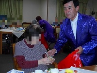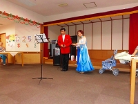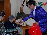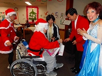 クリスマスということで施設からのプレゼントを代表のサンタさんから歌手の方へ。