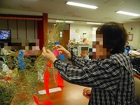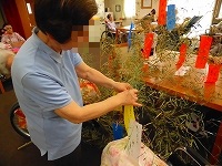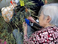 昨日は入居者の皆様で七夕用笹への飾りつけが行われました。