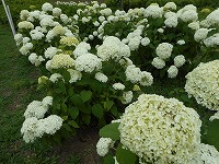 いつも見る青紫色の紫陽花はもちろん、白紫陽花やヤマアジサイ、カシワバアジサイも見事に咲いていました。