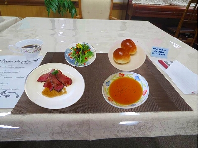 本日より毎週日曜日はホールをレストラン調にして豪華メニューを楽しんで頂く、、