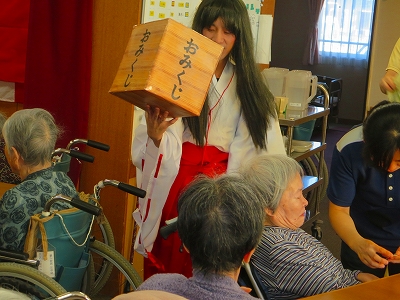 餅つき、獅子舞、おみくじの三本立ての催しのあとは
