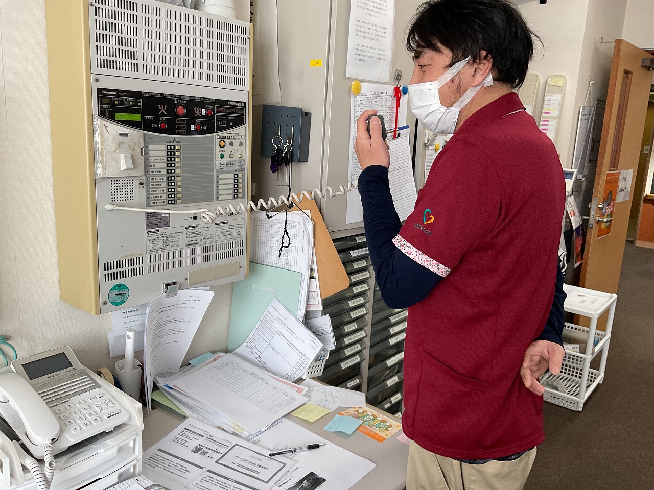 館内に火災発生のアナウンスが流れると各スタッフに入居者様誘導の指示が出ました。