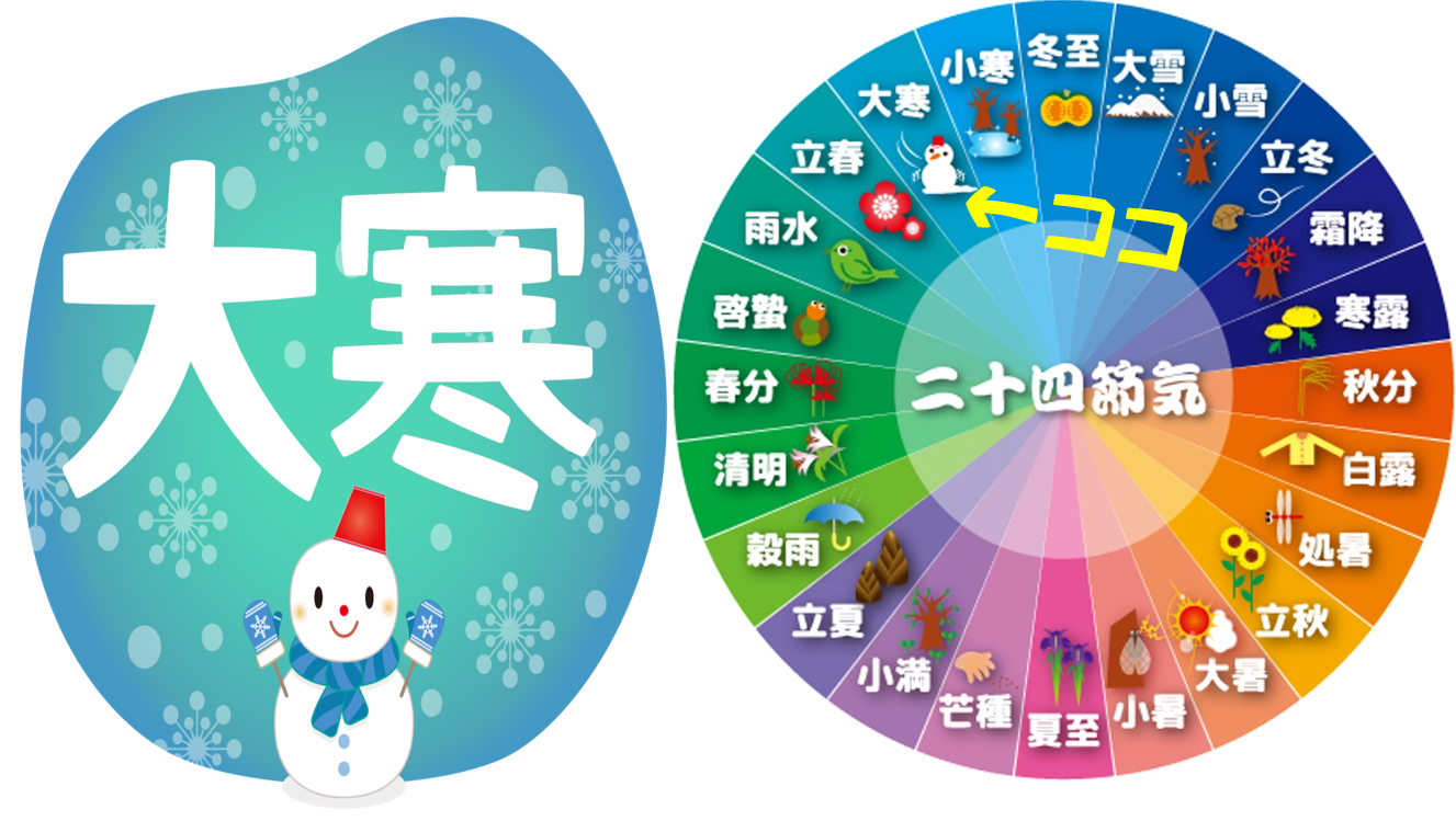 「大寒(だいかん)」は、「二十四節気」の一つで第24番目にあたります。