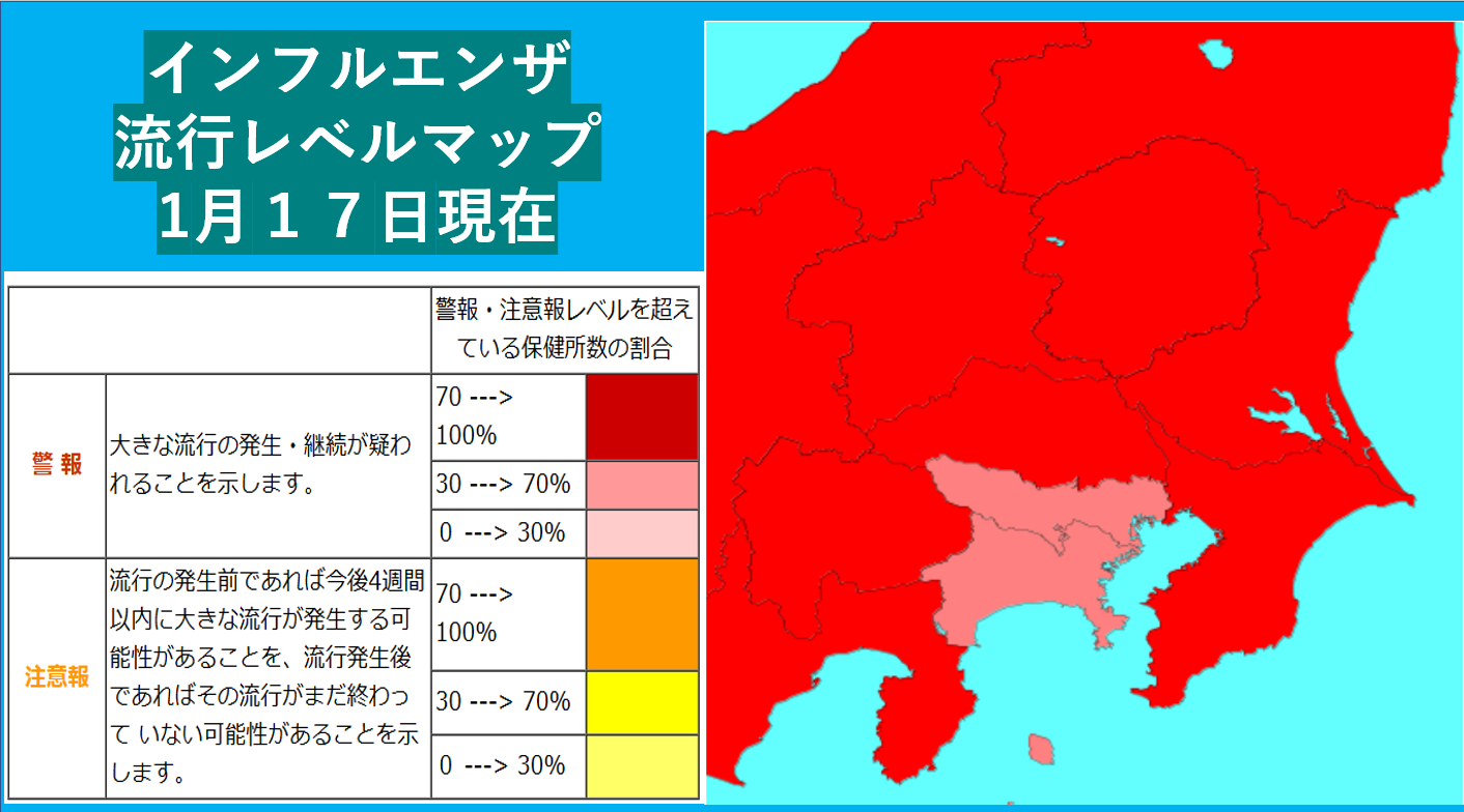 流行っているインフルエンザの流行状況を今週も確認してみました。