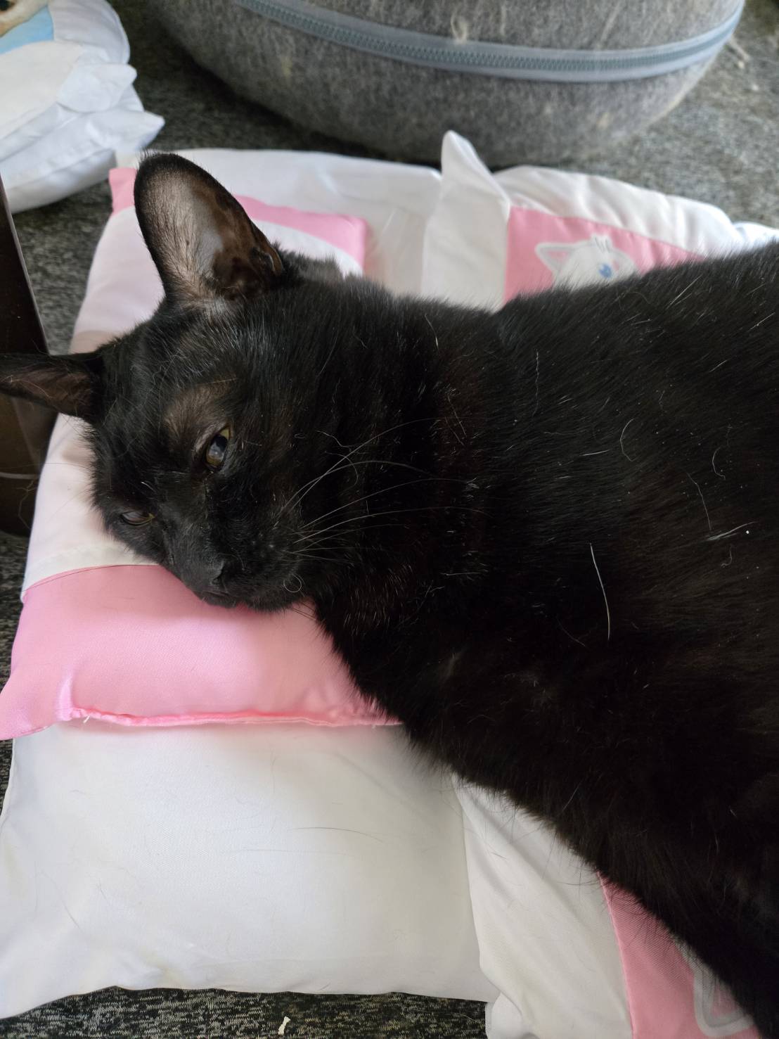 猫の寝る姿のイメージをすると丸まっているのが普通だと思いますが、十兵衛くんは人のように寝ていますね!