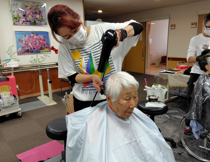 髪染めが終わった後に”10歳は若返りましたね!”と職員から声をかけられると”ありがとう”と笑顔いっぱいでした。