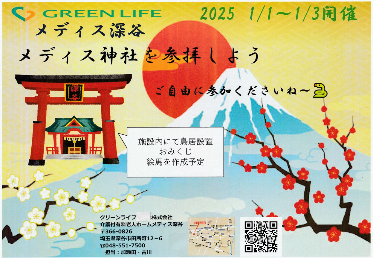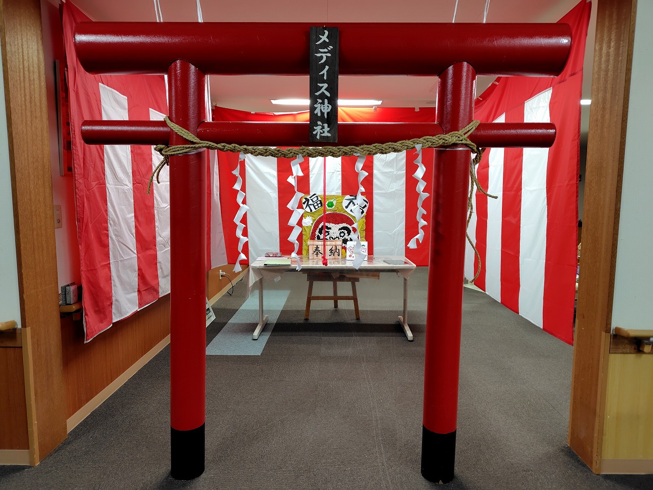 施設イベントとして今年も昨年好評だったメディス神社を設置しました。