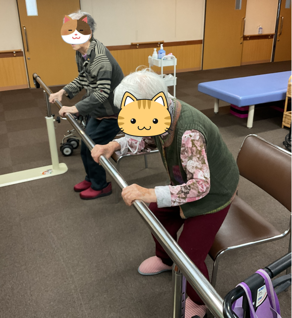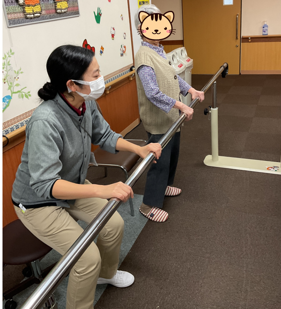 行きますよ!ゆっくり腰を降ろして10秒止めて(呼吸は止めずに)・・・はい、ゆっくり上げて・・・