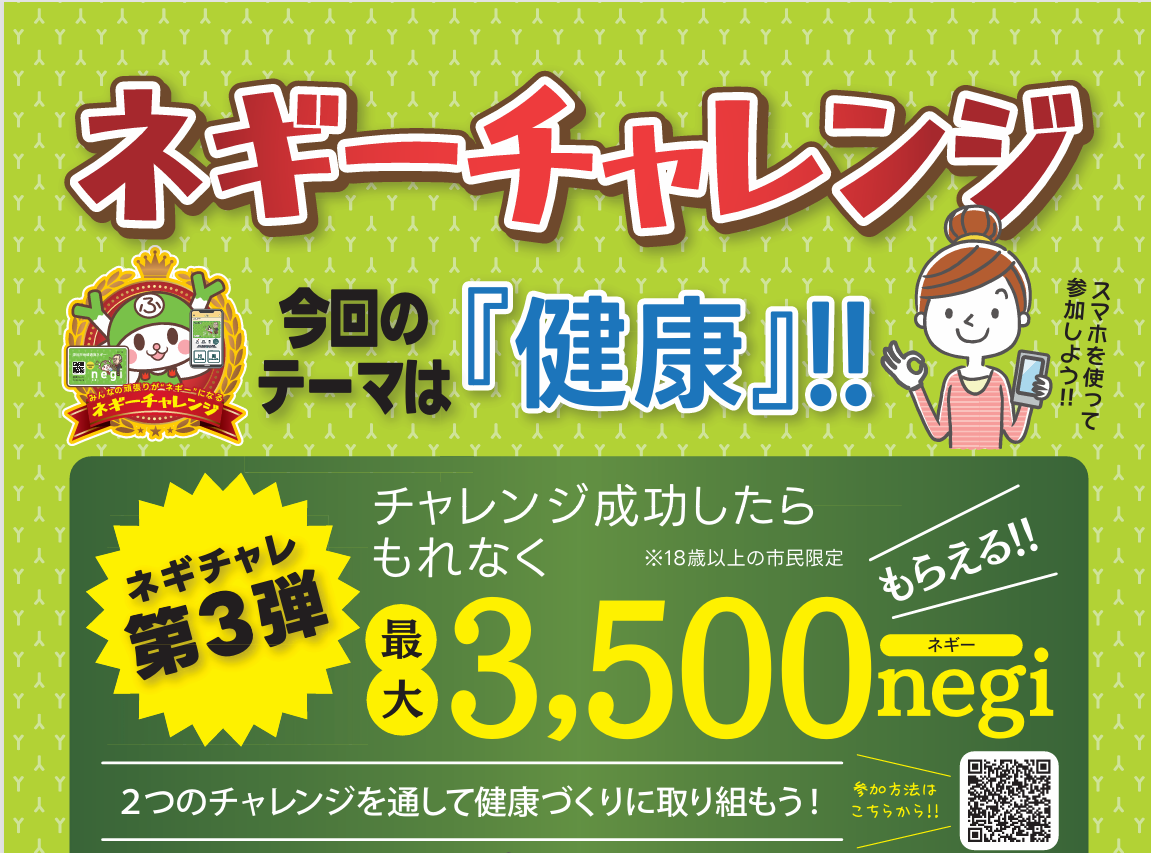 健康増進の一環事業のようで、参加者は電子マネー(?)のネギーがもらえるようです。