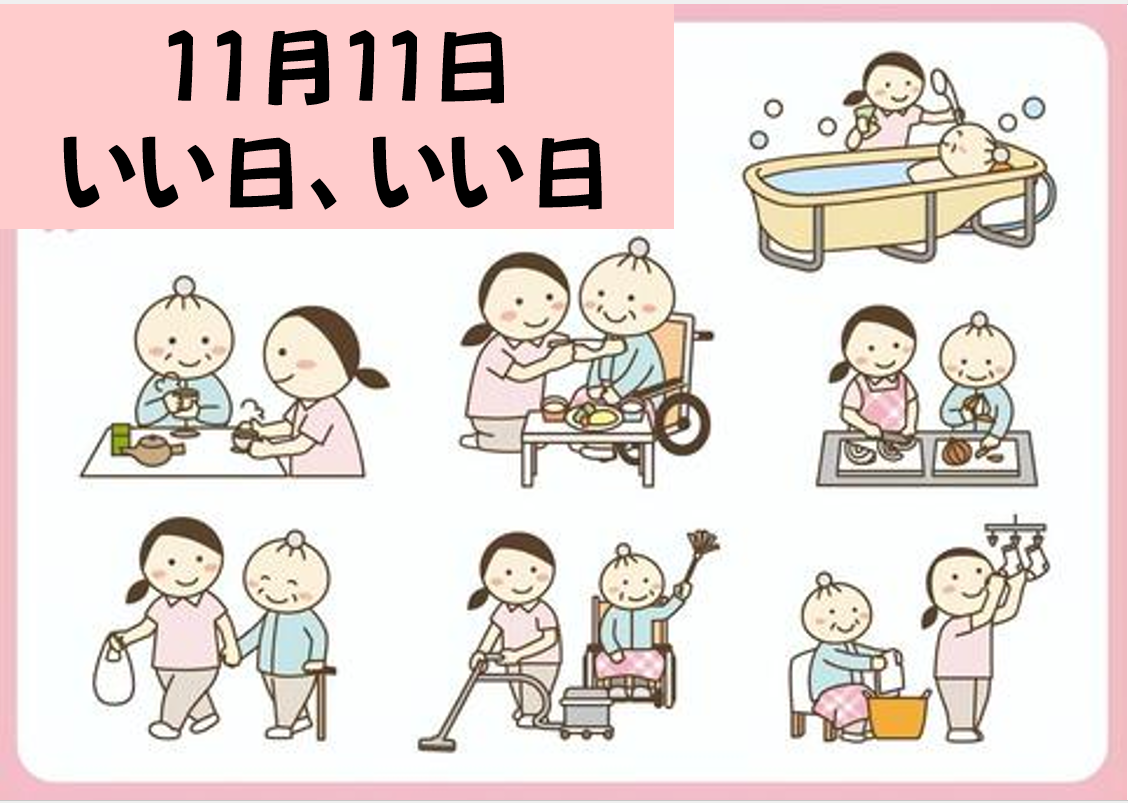 11月11日を「いい日、いい日」にかけた、覚えやすく、親しみやすい語呂合わせから決まったそうです。「いい日、いい日、毎日、あったか介護ありがとう」を念頭においてもらうんだとか。
