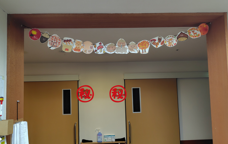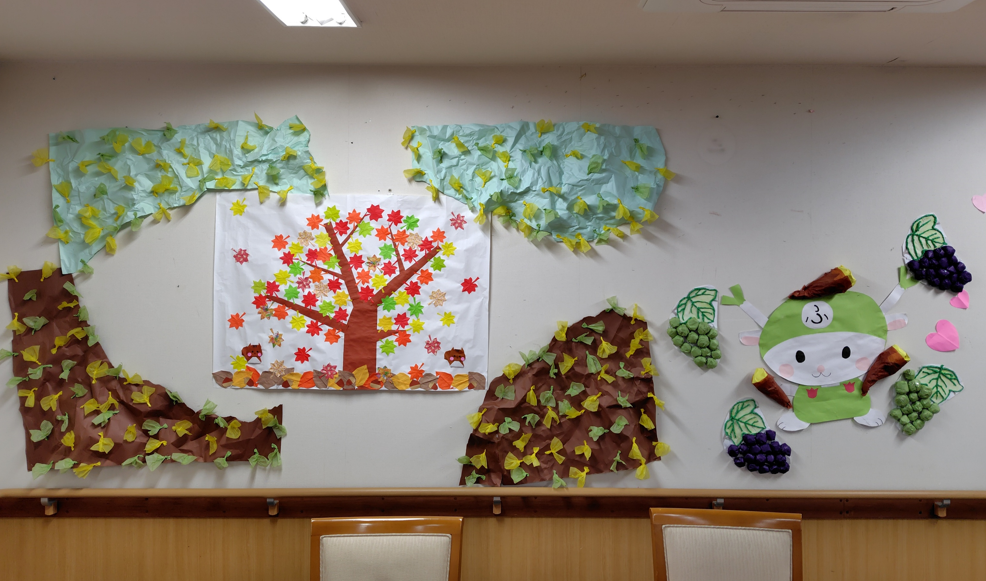 そろそろ秋の紅葉もピークになってきましたので、施設内でもその雰囲気が感じられるようにしてみましたよ(^^;)