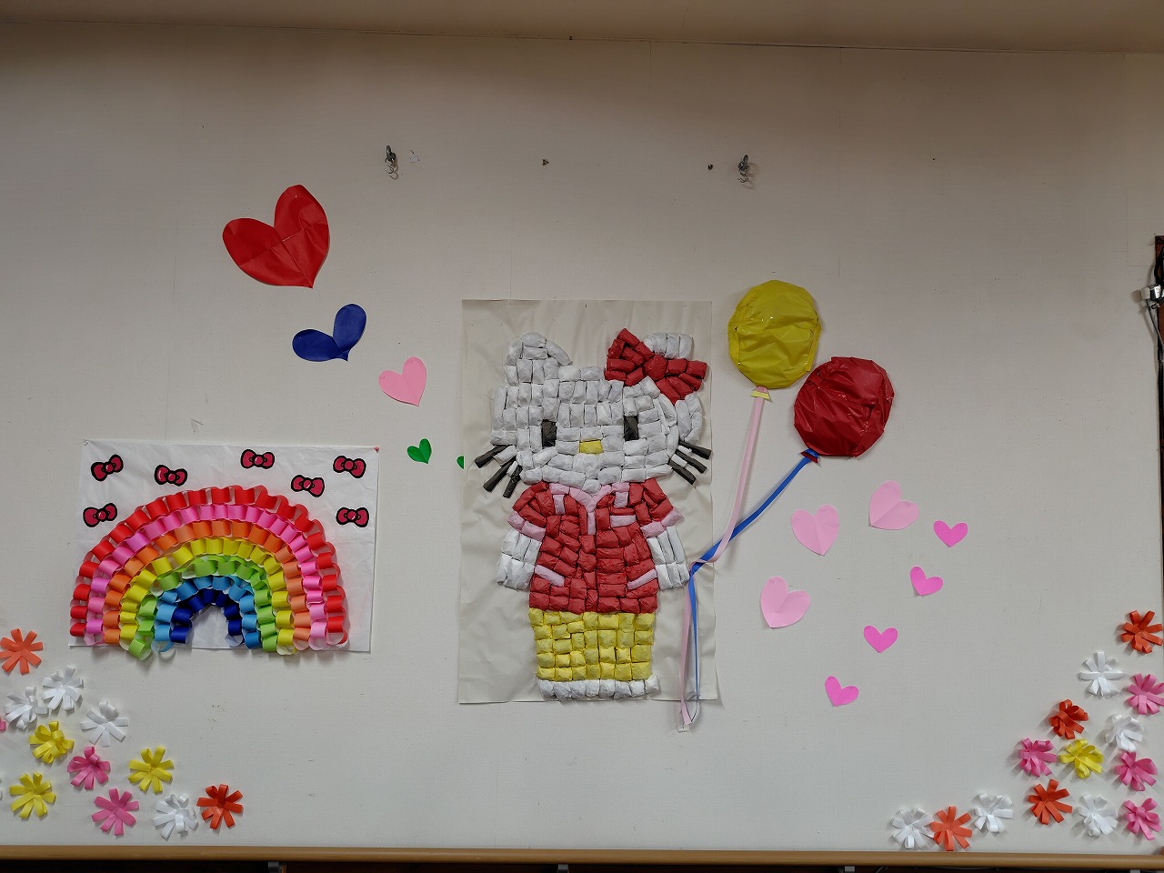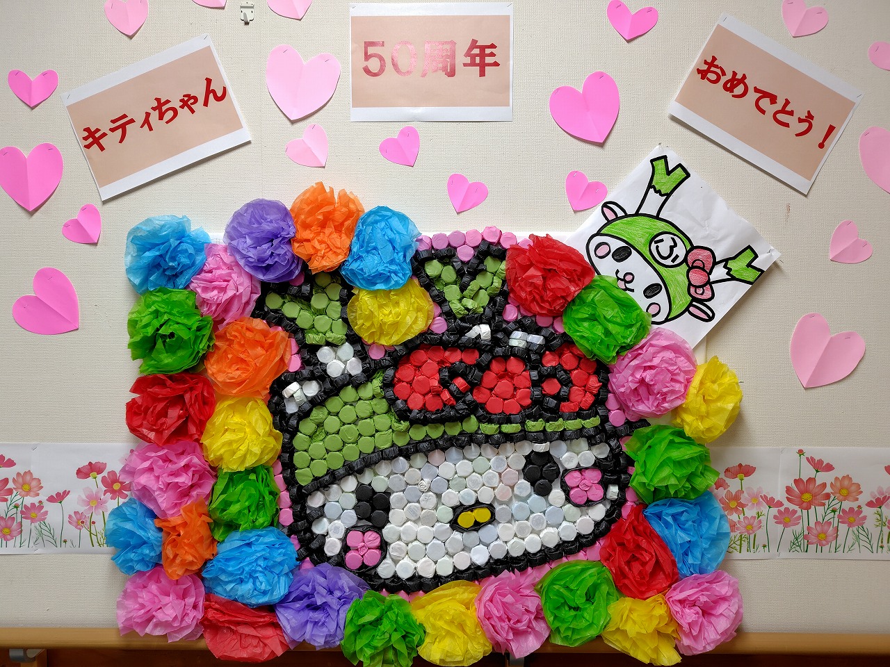 以前スタッフが作っていた創作物(我が町公認キャラのふっかちゃんとのコラボ)も飾られ、50周年を施設のみんなでお祝いします。