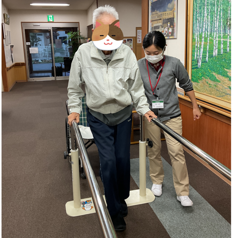普段の移動に車椅子を使っている利用者様が自力歩行を目指し頑張っていいました。