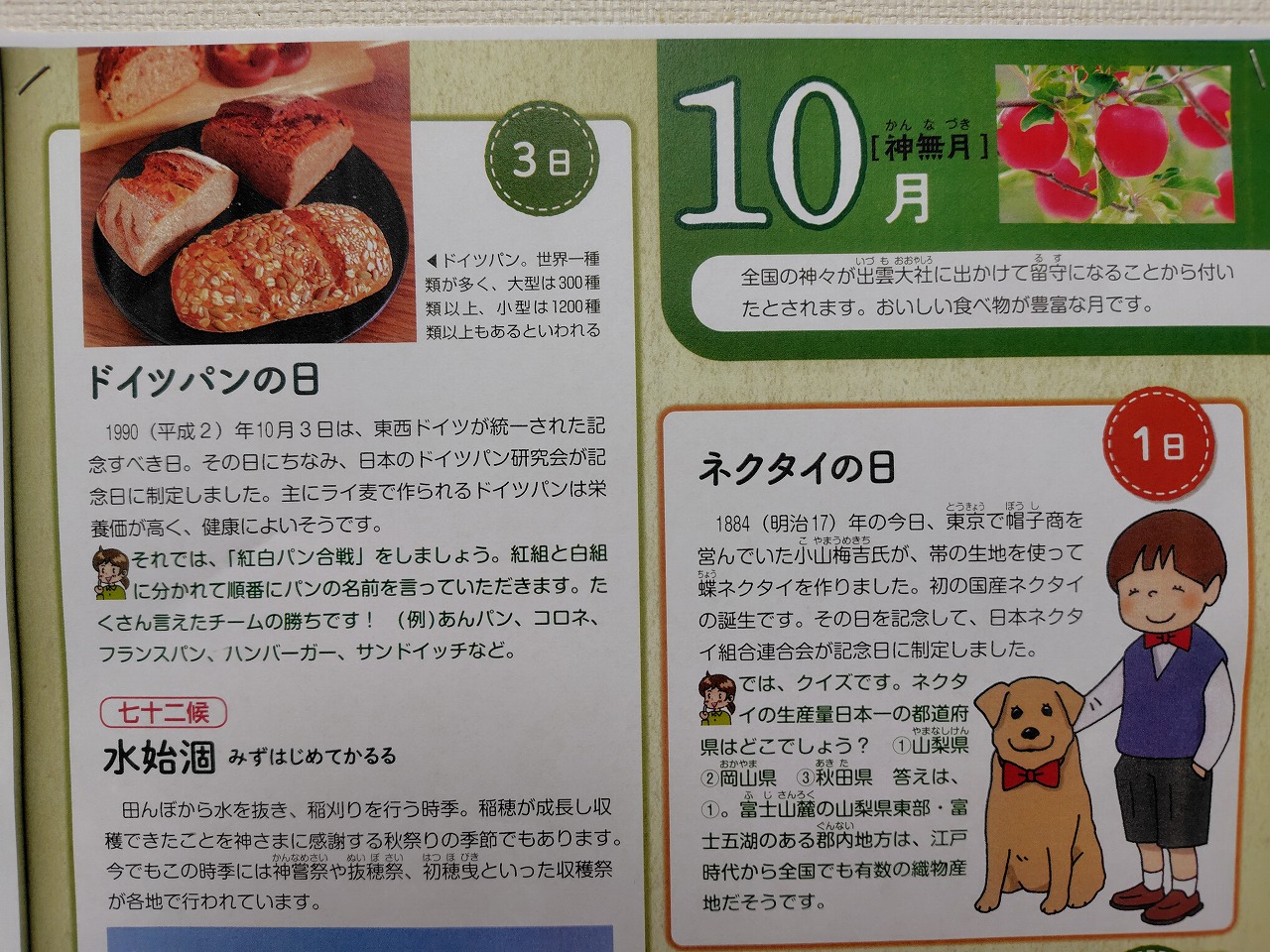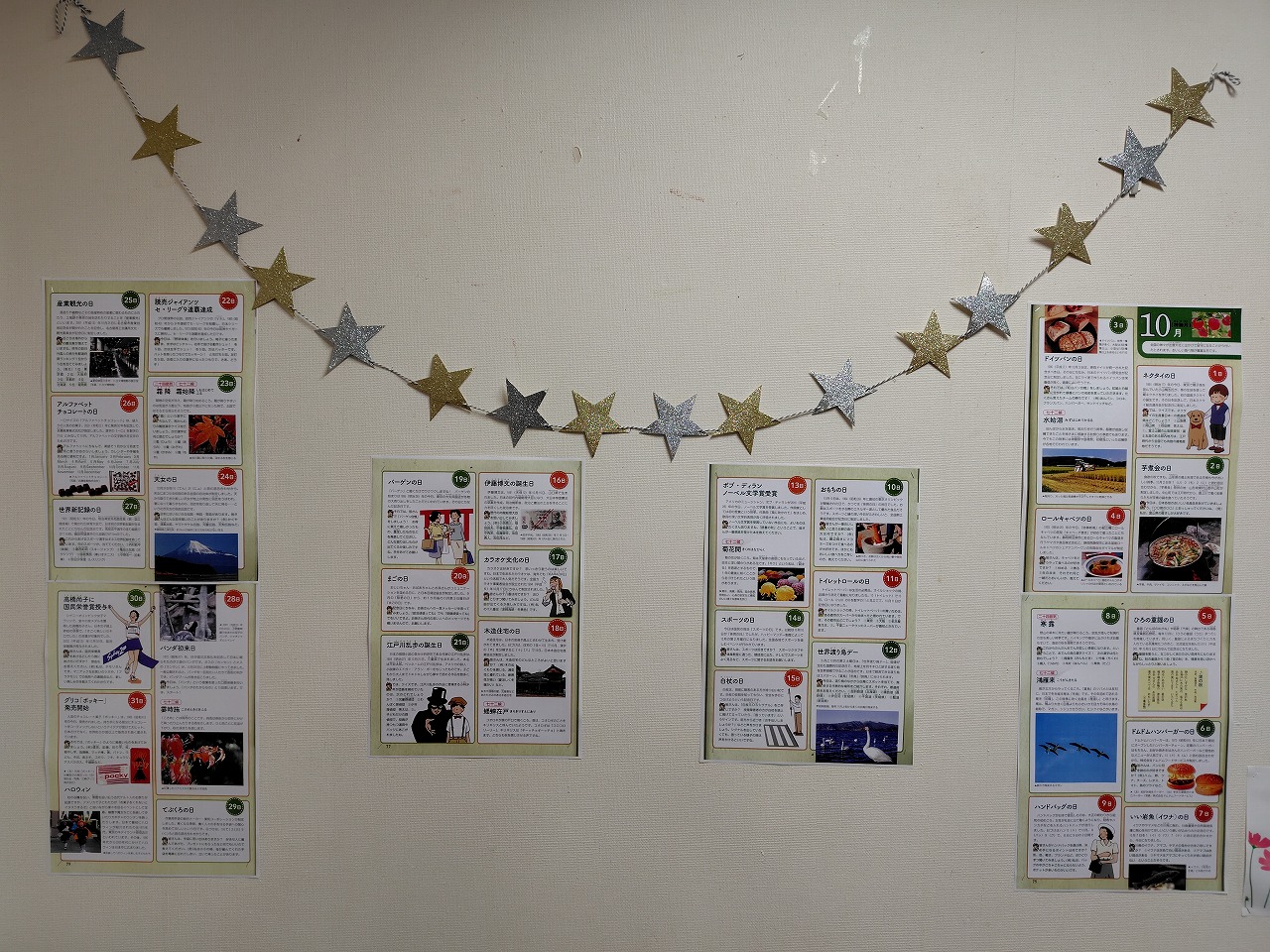 施設の壁紙に今日は何の日コーナーを設置しています。月が変わったので10月の情報に更新しました。