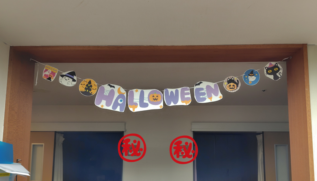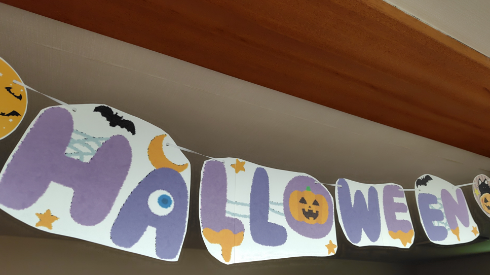 今後、壁飾りも更新していくと思いますが入居者様の中には怖い雰囲気なのは苦手な方もいるので、カワイイ系にしないとかな?