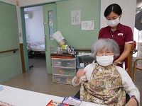 奥に写っている、ご利用者様は、切られたパーシートを伸ばし