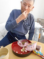 昨日に引き続き、ひな祭りのおやつをご利用者様が召し上がっている