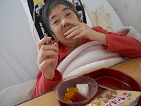 昨日、ご紹介したおやつをご利用者様が召し上がっている